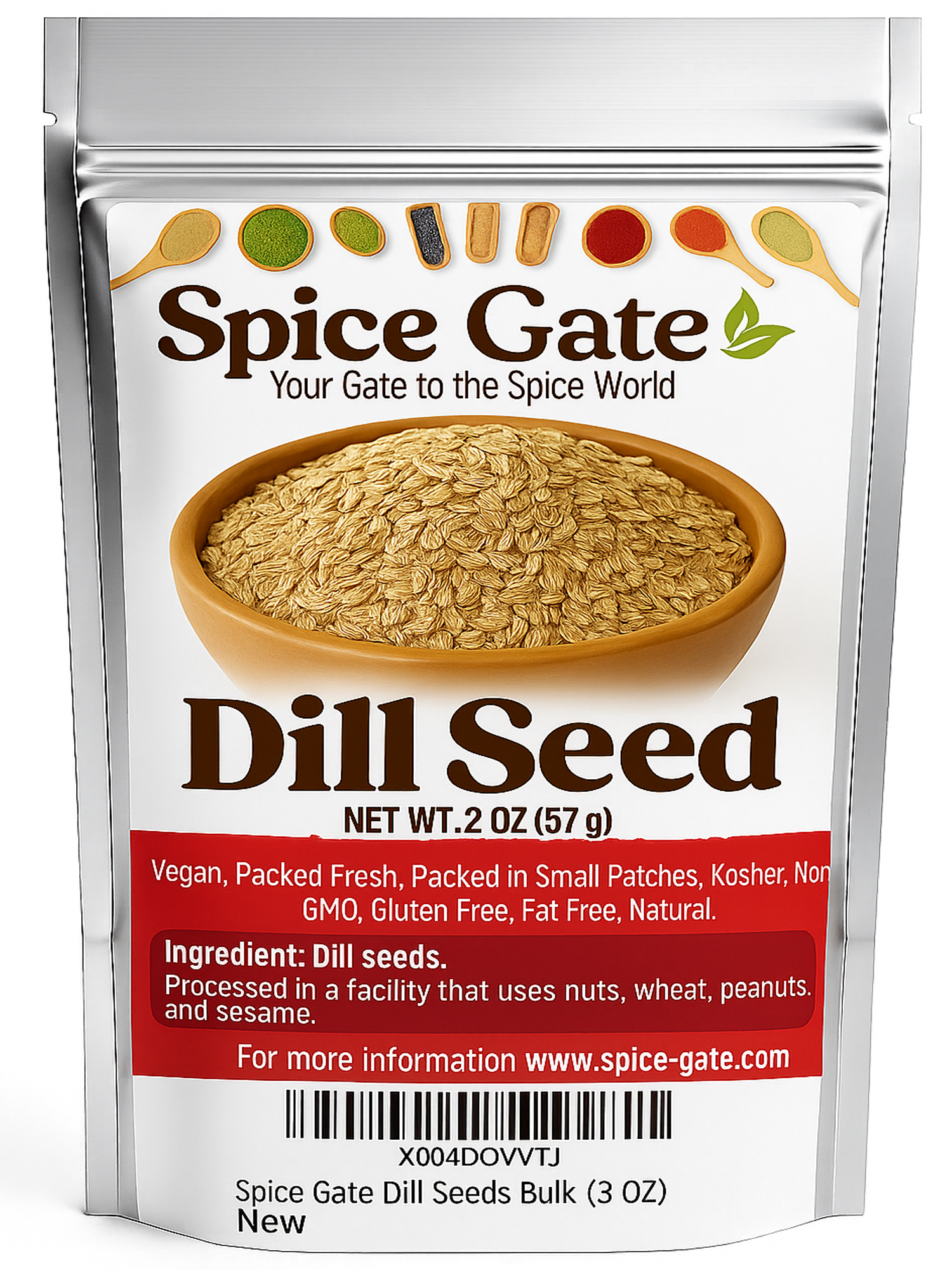 Enhance your culinary creations with Spice Gate Dill Seeds. Our 2 oz bag features premium dill seeds known for their fresh, aromatic flavor with a hint of anise. Perfect for adding a distinctive taste to pickles, soups, stews, salads, and more, Spice Gate Dill Seeds are a versatile addition to any kitchen. Carefully selected for quality and flavor, our dill seeds are ground to perfection to ensure a robust, consistent taste. Packaged in a resealable bag to lock in freshness, Spice Gate Dill Seeds offer a gourmet touch to your cooking. Bring the authentic taste of Spice Gate to your recipes and enjoy the delightful essence of dill.