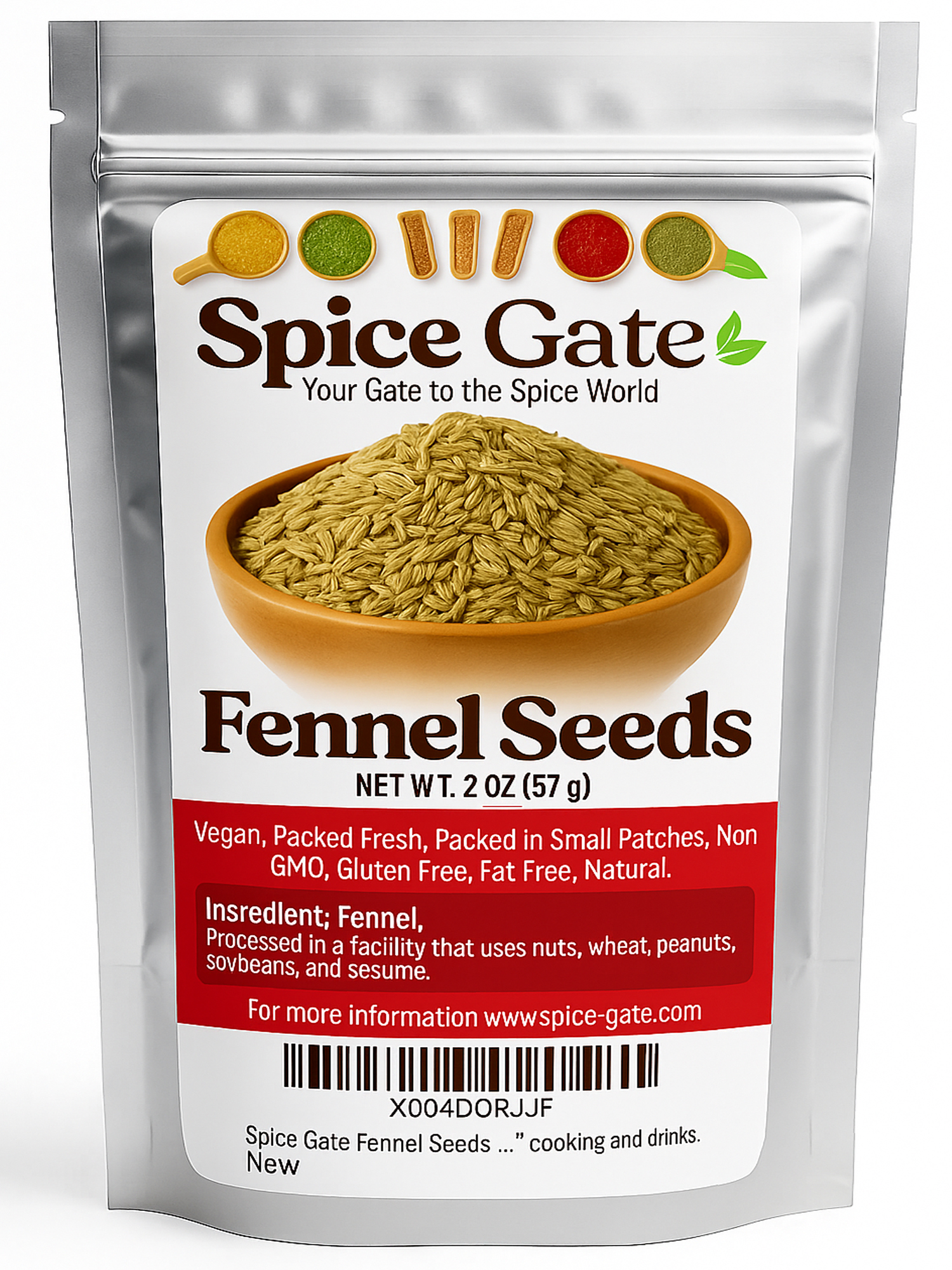 Elevate your culinary experience with Spice Gate Fennel Seeds. Our 2 oz bag of premium fennel seeds delivers a fresh, aromatic flavor that will transform your cooking. Known for their slightly sweet and licorice-like taste, these fennel seeds are a versatile ingredient that enhances a variety of dishes, from savory soups and stews to delicious baked goods and flavorful herbal teas. Packed with natural digestive benefits, Spice Gate Fennel Seeds can help soothe digestive discomfort and support overall digestive health. We ensure that each batch is carefully sourced and packaged to maintain peak freshness, flavor, and nutritional value. Our eco-friendly packaging reflects our commitment to sustainability, offering you a high-quality product while being mindful of the environment. Choose Spice Gate Fennel Seeds to bring a touch of gourmet excellence to your kitchen and enjoy the rich, distinctive taste of this cherished spice.