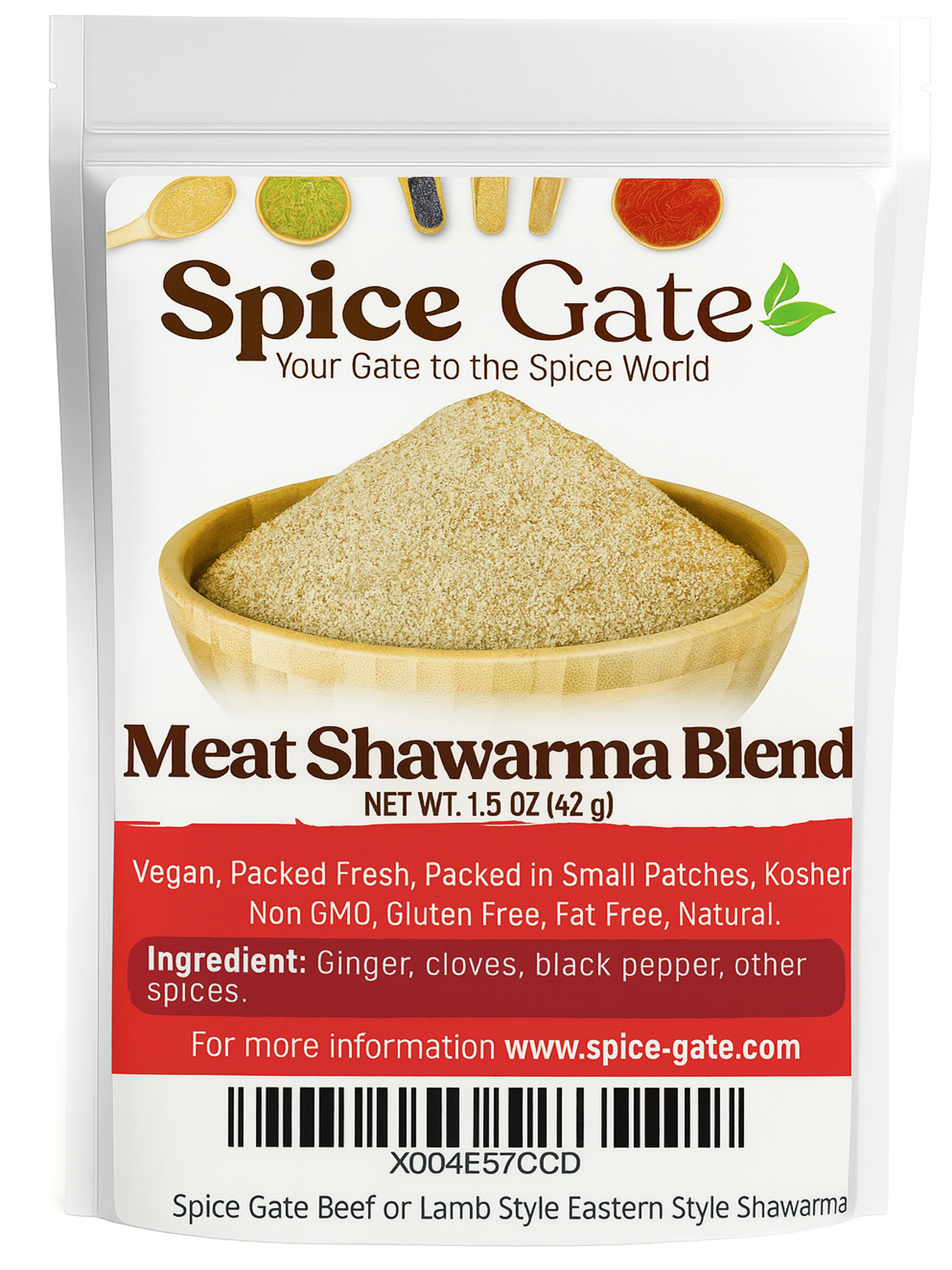 Elevate your cooking with the bold, aromatic flavors of Spice Gate Meat Shawarma Blend. Our 1.5 oz bag is filled with a carefully crafted mix of traditional spices designed to bring the authentic taste of Middle Eastern shawarma to your kitchen. Perfect for seasoning beef, lamb, or other meats, this blend combines the warmth of Seven Spice, Pepper, Cloves, Coriander, Cinnamon, and other savory spices to create a deep, rich flavor profile. Whether youre grilling, roasting, or pan-frying, Spice Gate Meat Shawarma Blend will transform your dishes into a flavorful, mouthwatering experience. Packaged in a resealable bag to maintain freshness, this seasoning makes it easy to prepare restaurant-quality shawarma at home with ease and convenience.