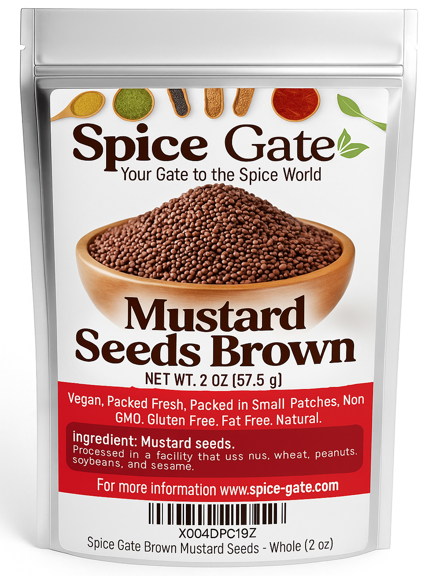 Spice Gate Brown Mustard Seeds - 2 oz Discover the bold and robust flavor of Spice Gate Brown Mustard Seeds. Our 2 oz bag contains premium brown mustard seeds known for their pungent, slightly spicy kick and deep, rich taste that enhances a wide variety of dishes. Brown mustard seeds are a versatile ingredient, perfect for adding a savory depth to pickles, sauces, and dressings. They are also ideal for crafting homemade mustard, seasoning meats, and incorporating into spice blends and marinades. Their distinctive flavor profile adds complexity and a satisfying heat to your culinary creations. At Spice Gate, we ensure that our mustard seeds are meticulously sourced and processed to maintain their full flavor and aroma. The 2 oz bag features a resealable closure, keeping your seeds fresh and ready for use, preserving their vibrant taste and essential oils. Elevate your cooking with the intense and flavorful kick of Spice Gate Brown Mustard Seeds, and bring a touch of gourmet excellence to your everyday and special dishes.