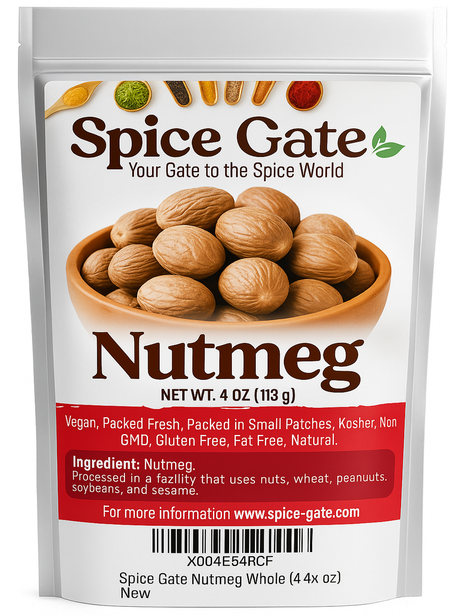 Add a warm, aromatic touch to your dishes with Spice Gate Whole Nutmeg. Our 4 oz bag contains whole, premium-quality nutmeg, perfect for grating fresh into your recipes for an intense and rich flavor. Known for its distinctive warm and slightly sweet taste, nutmeg is an essential spice in both sweet and savory cooking, enhancing everything from desserts and baked goods to soups, sauces, and meat dishes. By grating it fresh, you capture the full aroma and potency of this versatile spice, ensuring a fresher, more flavorful addition to your meals. Packaged in a resealable bag to preserve freshness, Spice Gate Whole Nutmeg offers a gourmet experience that brings out the best in your culinary creations. Ideal for home chefs looking to add a bold, aromatic twist to their dishes.