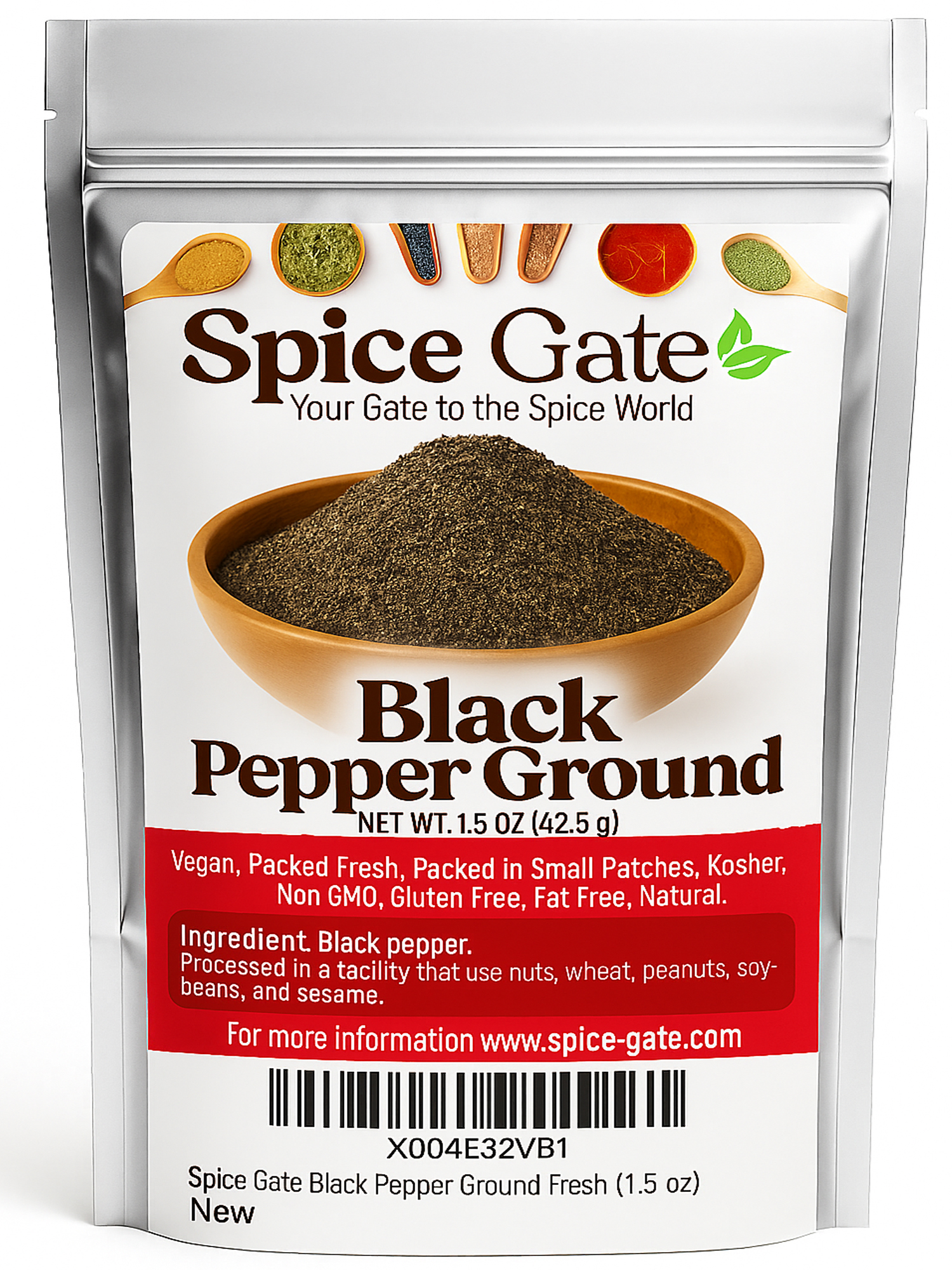 Fresh Ground Black Pepper - 1.5 oz Bag by Spice Gate Elevate your culinary creations with Spice Gates Fresh Ground Black Pepper. Our 1.5 oz resealable bag is packed with premium, aromatic black peppercorns that are freshly ground to deliver a robust and vibrant flavor to any dish. Perfect for seasoning meats, vegetables, soups, and salads, this pepper adds a zesty kick and enhances the complexity of your meals. Product Features: - Premium Quality: Sourced from the finest peppercorns, our black pepper is freshly ground to ensure a bold, consistent flavor. - Versatile Use: Ideal for a wide range of dishes, from savory stews to gourmet salads, this pepper enhances the taste of both everyday and special recipes. - Resealable Bag: Convenient and practical, the 1.5 oz bag features a resealable top to keep your pepper fresh and flavorful. - No Additives: Contains no fillers or additives—just pure, unadulterated black pepper for a natural, high-quality taste. Usage Tips: Add freshly ground black pepper to taste during cooking or as a finishing touch to dishes. Store in a cool, dry place away from sunlight to maintain peak freshness. Bring out the best in your cooking with Spice Gates Fresh Ground Black Pepper. Its the perfect seasoning for chefs and home cooks who appreciate quality and flavor. Add it to your cart today and start creating dishes that are sure to impress!