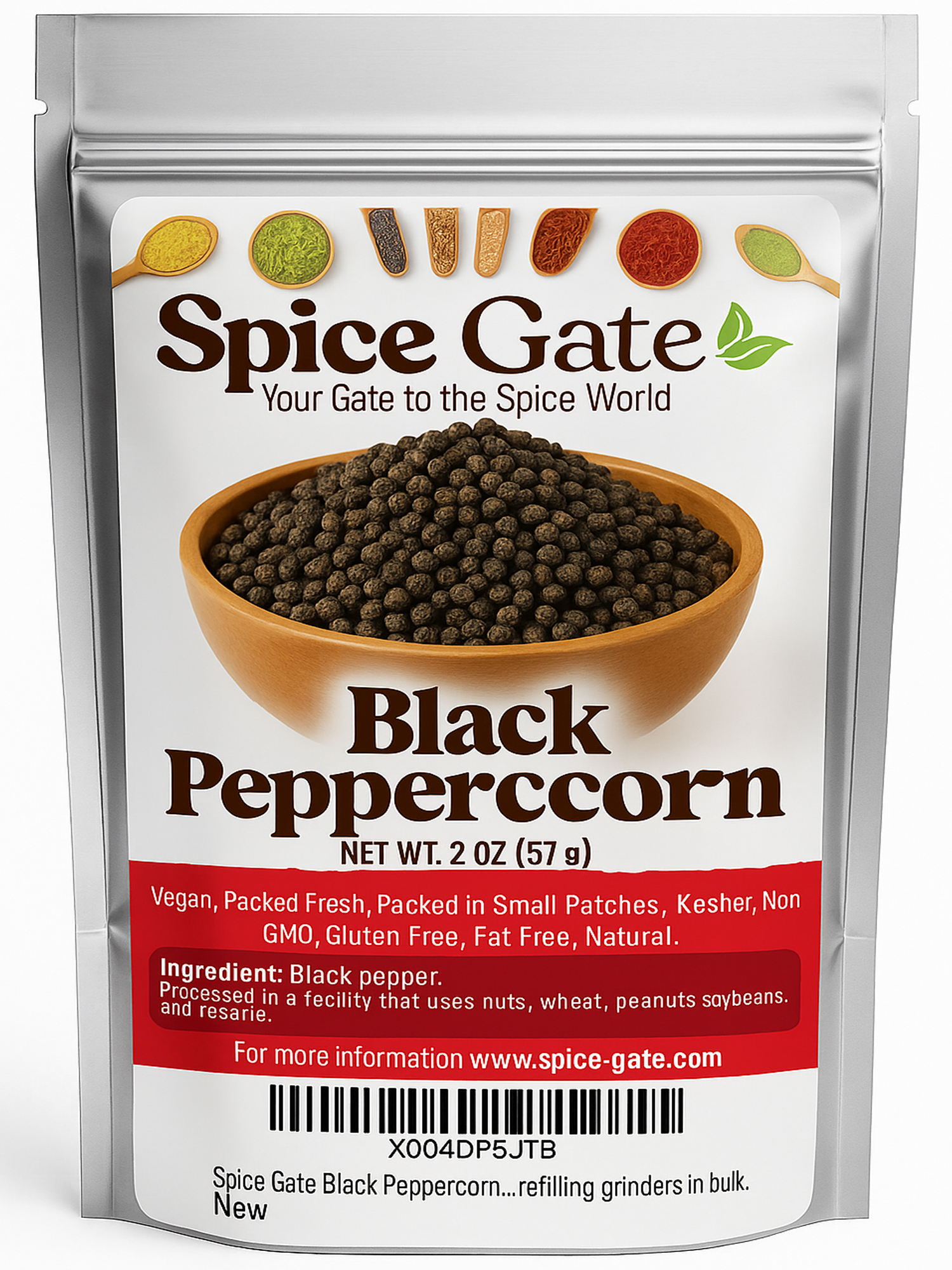 Spice Gate Black Whole Peppercorns - 2 oz Unlock the full potential of your culinary creations with Spice Gate Black Whole Peppercorns. Our 2 oz bag is packed with premium black peppercorns, known for their intense, aromatic flavor and robust heat that enhances a wide range of dishes. These whole peppercorns are perfect for grinding fresh, releasing their essential oils and natural heat right before use. Ideal for seasoning meats, adding depth to soups and stews, or elevating vegetables and sauces, Spice Gate Black Whole Peppercorns bring a gourmet touch to your kitchen. Each peppercorn is carefully selected and packaged to ensure maximum freshness and flavor, allowing you to experience the full, vibrant taste of high-quality black pepper. The resealable 2 oz bag keeps your peppercorns fresh and easily accessible, maintaining their peak quality. Add Spice Gate Black Whole Peppercorns to your spice rack and enjoy the exceptional flavor and versatility that comes with freshly ground pepper in every meal.