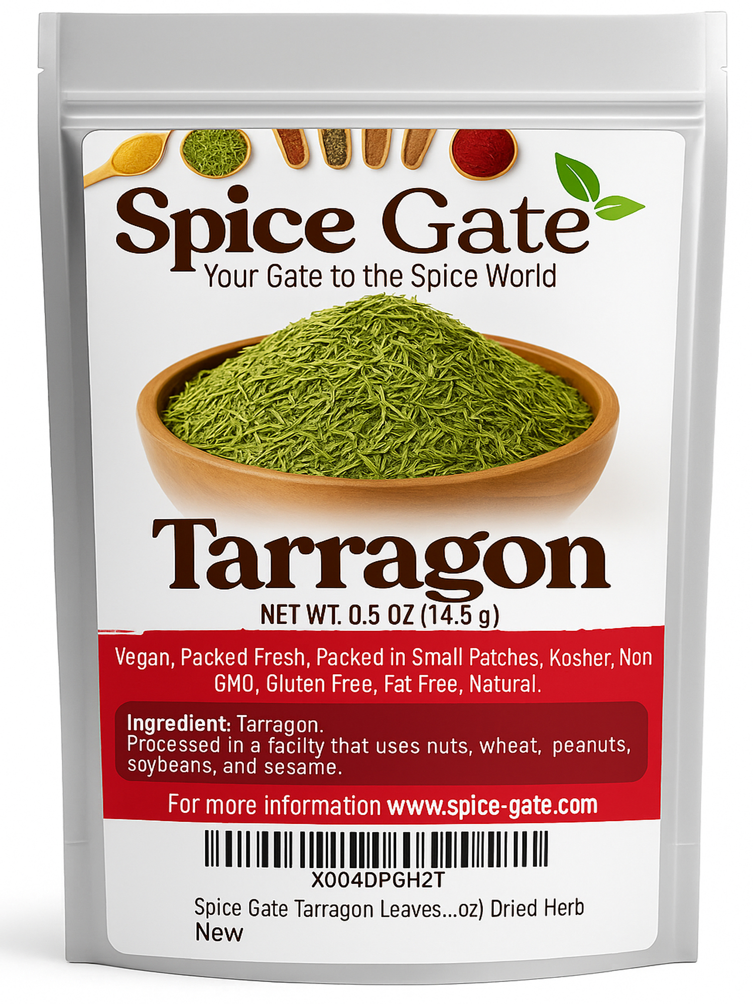 Spice Gate Dried Tarragon - 0.5 oz Enhance your culinary creations with the unique flavor of Spice Gate Dried Tarragon. Our 0.5 oz bag features premium dried tarragon leaves, renowned for their distinct, slightly sweet, and anise-like taste. This aromatic herb is perfect for adding a sophisticated touch to a variety of dishes. Dried tarragon is ideal for seasoning chicken, fish, and vegetables, as well as for enriching sauces, dressings, and vinaigrettes. Its subtle, nuanced flavor complements both light and hearty recipes, making it a versatile addition to your spice collection. Each batch of Spice Gate Dried Tarragon is meticulously dried and processed to preserve its natural flavor and aroma, ensuring you receive a high-quality product with every use. The 0.5 oz bag features a resealable closure to keep your tarragon fresh and aromatic, maintaining its vibrant flavor over time. Add Spice Gate Dried Tarragon to your pantry and experience the distinctive, herbaceous taste it brings to your cooking, perfect for elevating your favorite recipes and exploring new culinary creations.